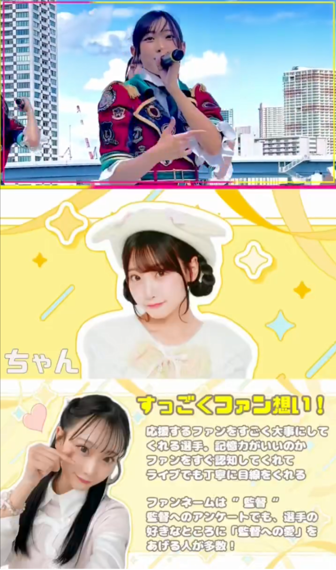 常にファンに幸せを届けることを第一に考え、日々努力を惜しまない真摯な姿勢が、多くの「監督」(ファン)の心を惹きつけている。